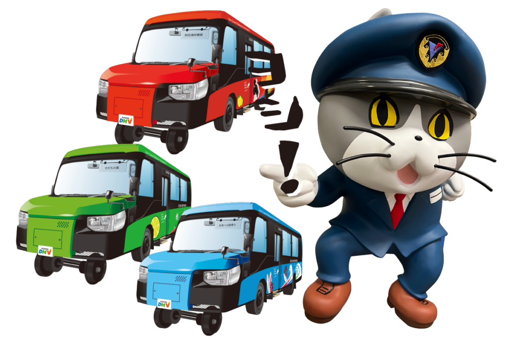 これを記念し、SNSやLINEスタンプで絶大な人気を誇るキャラクター「仕事猫(くまみね氏デザイン)」とのタイアップが決定!安全確認の代名詞「ヨシ!」ポーズの仕事猫がDMV運転士に扮した立像となり、沿線を巡る記念キャラバンを開催します。